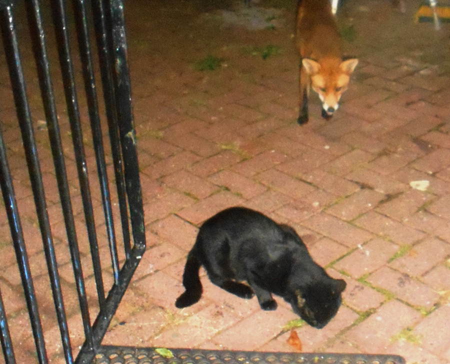 Vicky and the black cat now appear at around the same time each evening which tends to be about 15 minutes after dark. It's quite funny to open the back door and find them waiting patiently. The cat is sitting there while Vicky is always standing, eyeing the cat warily.