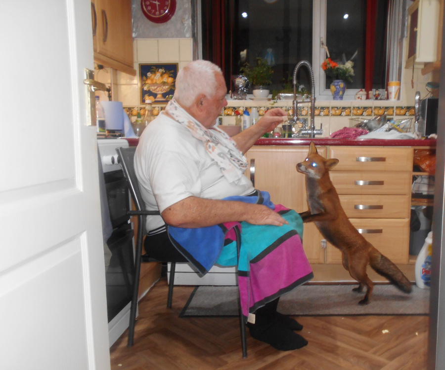 As from today, 16 July, Vicky now comes to our back door to wait for her food. When I gently open the door she will retreat a little way from the door then as I back away into the kitchen she will begin to follow me in.