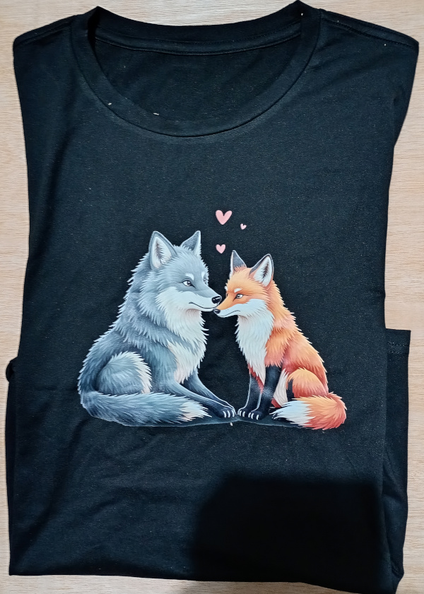 Women's wolf and fox companion graphic tee shirt. Sizes available from 8 - 18.